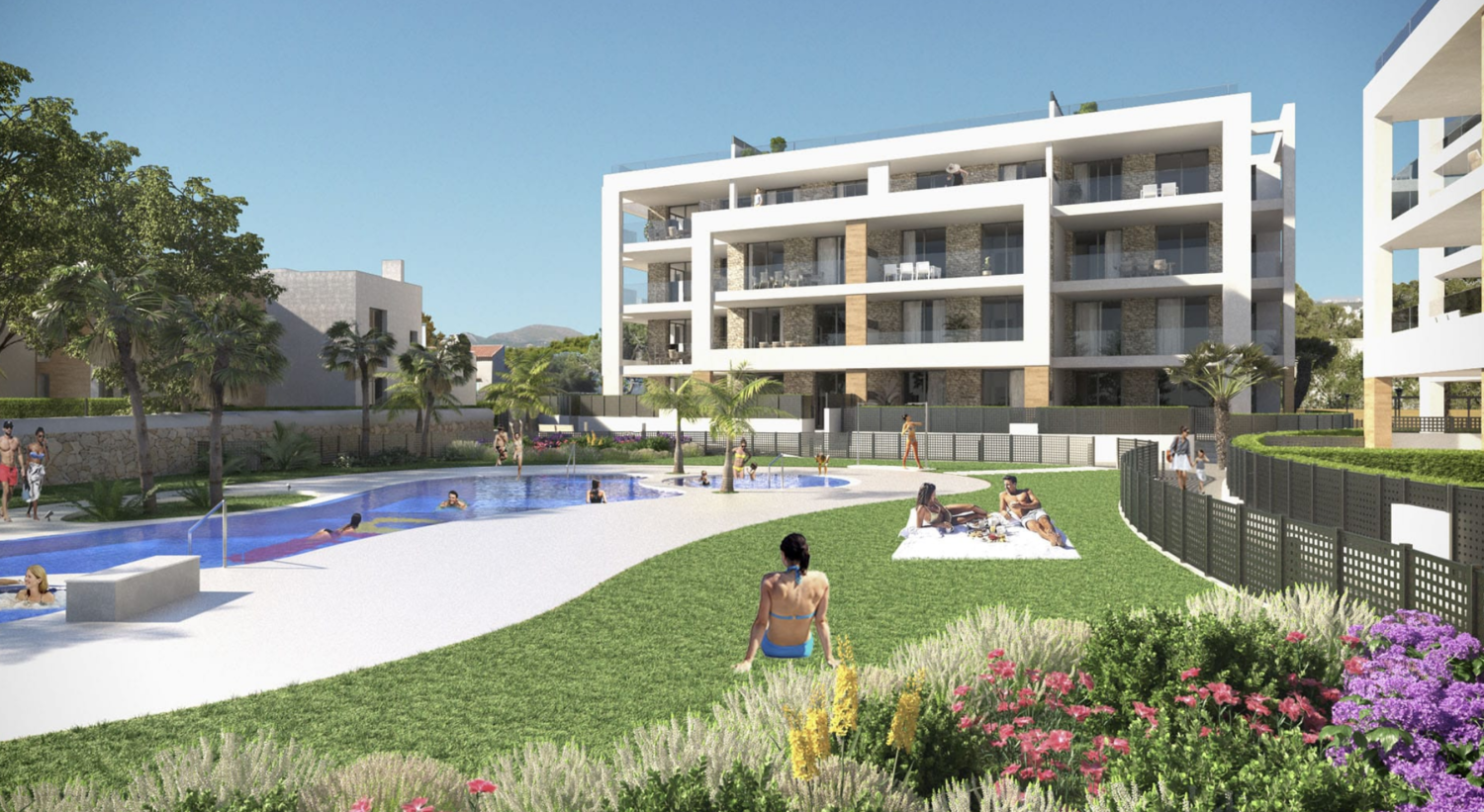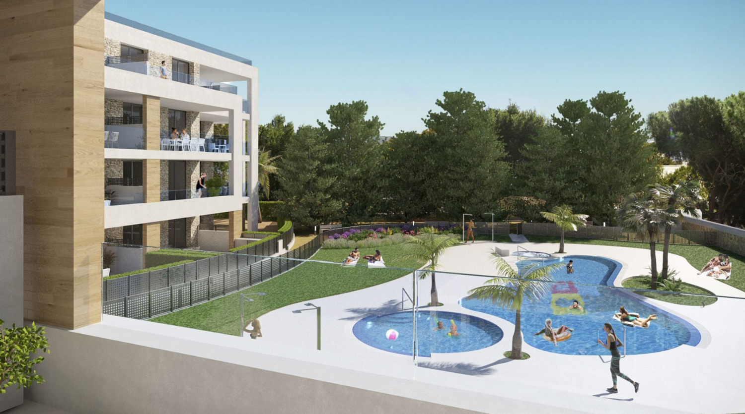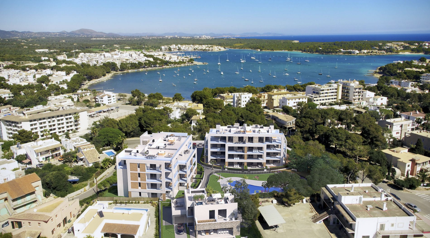 Es Far de Portocolom is a residential with only 29 beach homes, located 500 meters from the sea, on the east coast of Mallorca. It’s a well-known area of the island, which exudes charm by collecting the beauty of an irregular coastal geography with crystal clear waters and the uniqueness of the traditional fishing village from which it takes its name. The architecture of the development reinforces and aligns with the warmth of its Mediterranean enclave. Its facades combine stone, white and beige colours. The property development also optimises space and light, to offer a set of apartments with excellent orientation and ventilation. Besides, it enjoys great community areas that include swimming pools, and a Jacuzzi for adults and children. Es Far de Portocolom also offers a children playground area. All these facilities are set on a large area of gardens with natural grass, hammocks and umbrellas. The urbanization has parking and storage rooms too. Delivery day February-2021