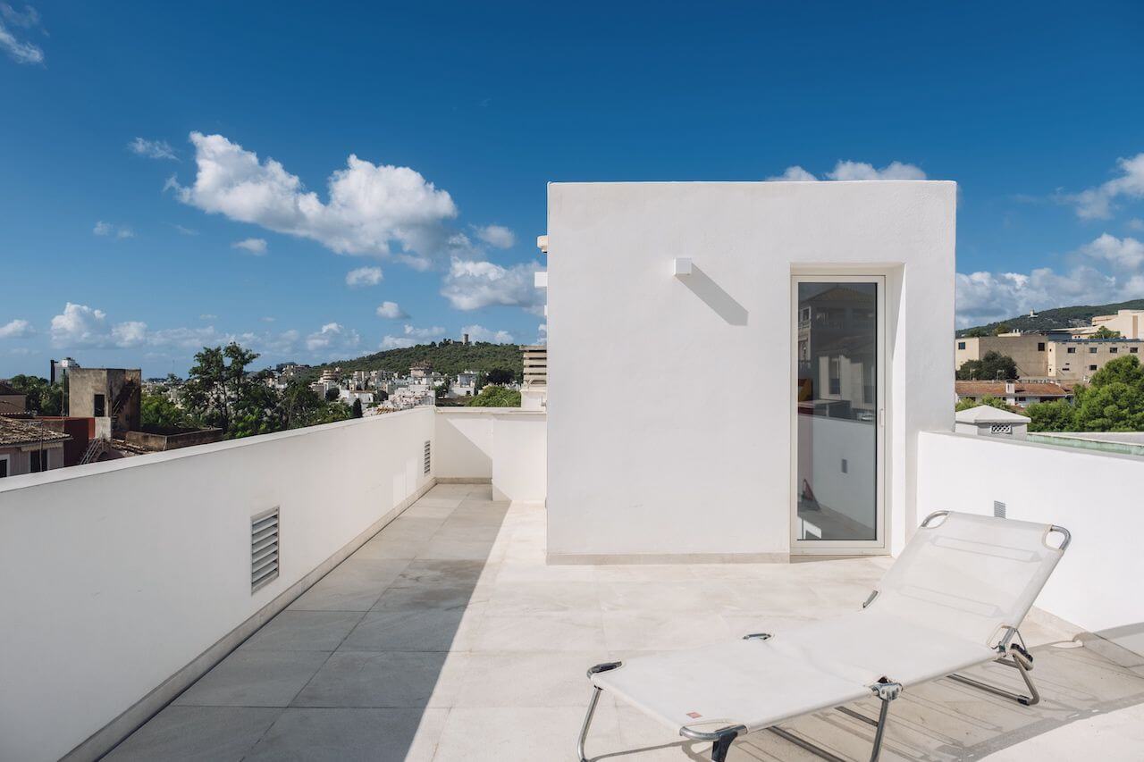 The first floor comprises 4 bedrooms, two bathrooms, a laundry room. Two of the bedrooms shares a terrace that is overlooking the pool area. The master bedroom is en-suite, with built-in closets and the bathroom offer both bathtub and shower. On the third floor you will find the large roof top terrace that offers great views over Palma, perfect for enjoying a quiet evening.