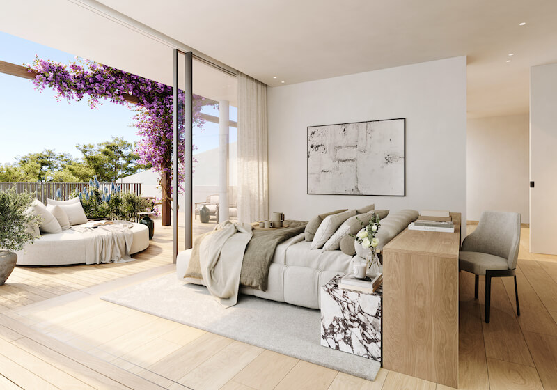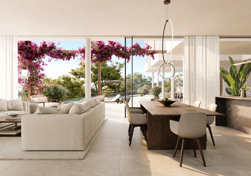 Villas Falcó are being built to the highest standard, using top quality materials and luxurious finishes. Each villa spreads over two floors with several terraces and outdoor spaces as well as a private pool. There are four bedrooms and five bathrooms in each villa and large social spaces as well as underground garages.’