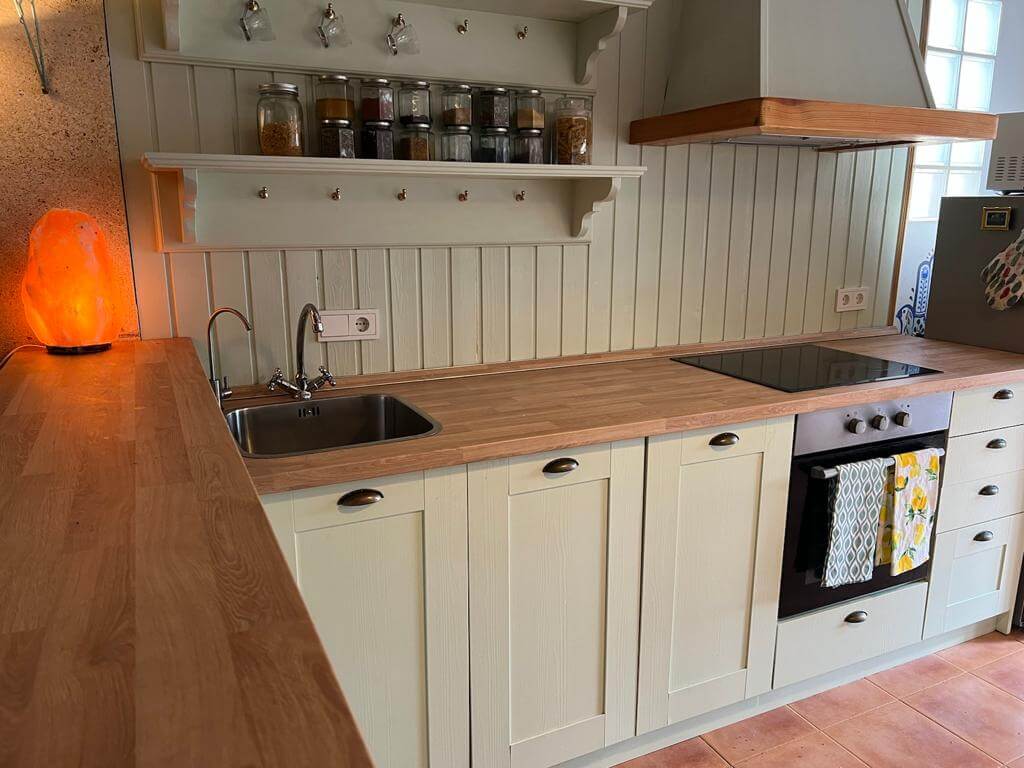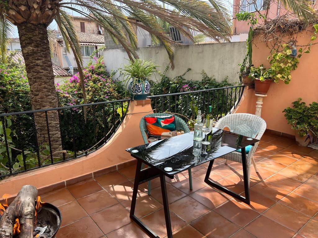 Throughout the property, the typical Majorcan character can be appreciated thanks to the wooden beams and the three-and-a-half metre high ceilings which give an airy and even more spacious feeling. From the entrance hall, you enter the large living/dining room with an integrated open plan kitchen which has been renovated in 2021. To the right of this space is both a full bathroom and a single bedroom. At the end of the living room is the magnificent terrace of 18 sqm facing the inner courtyard with a beautiful view. To the left of the entrance door, the 25m2 master bedroom with French balcony and an adjoining room currently used as a storage room, with facilities prepared to convert it into an en-suite bathroom.