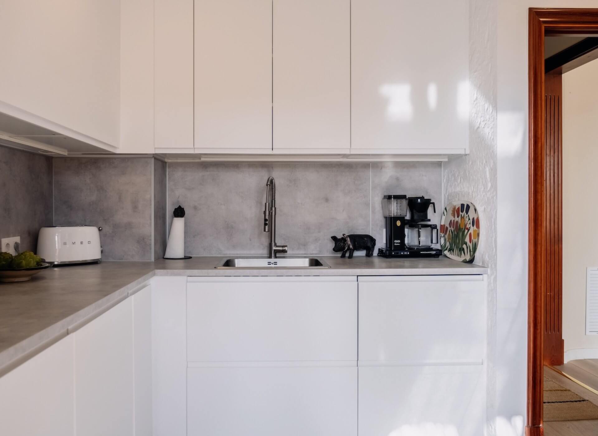 A separate fully equipped kitchen with access to an 8m2 private south-facing terrace ideal for enjoying a morning coffee or breakfast.