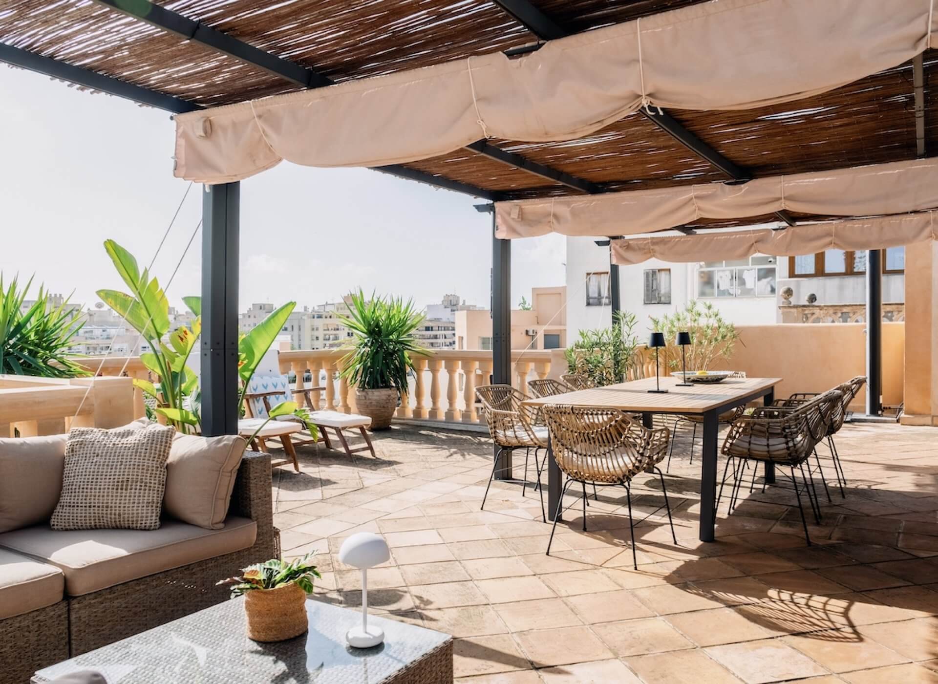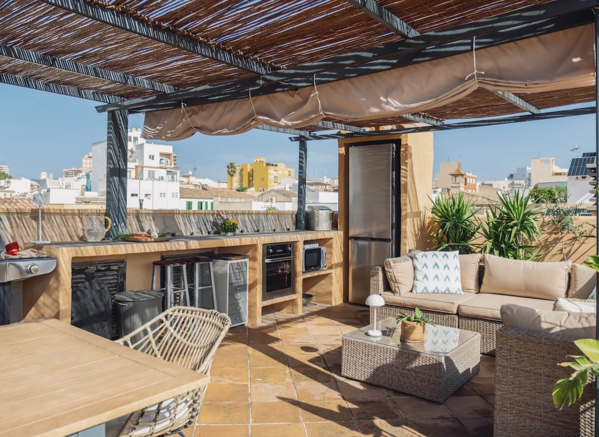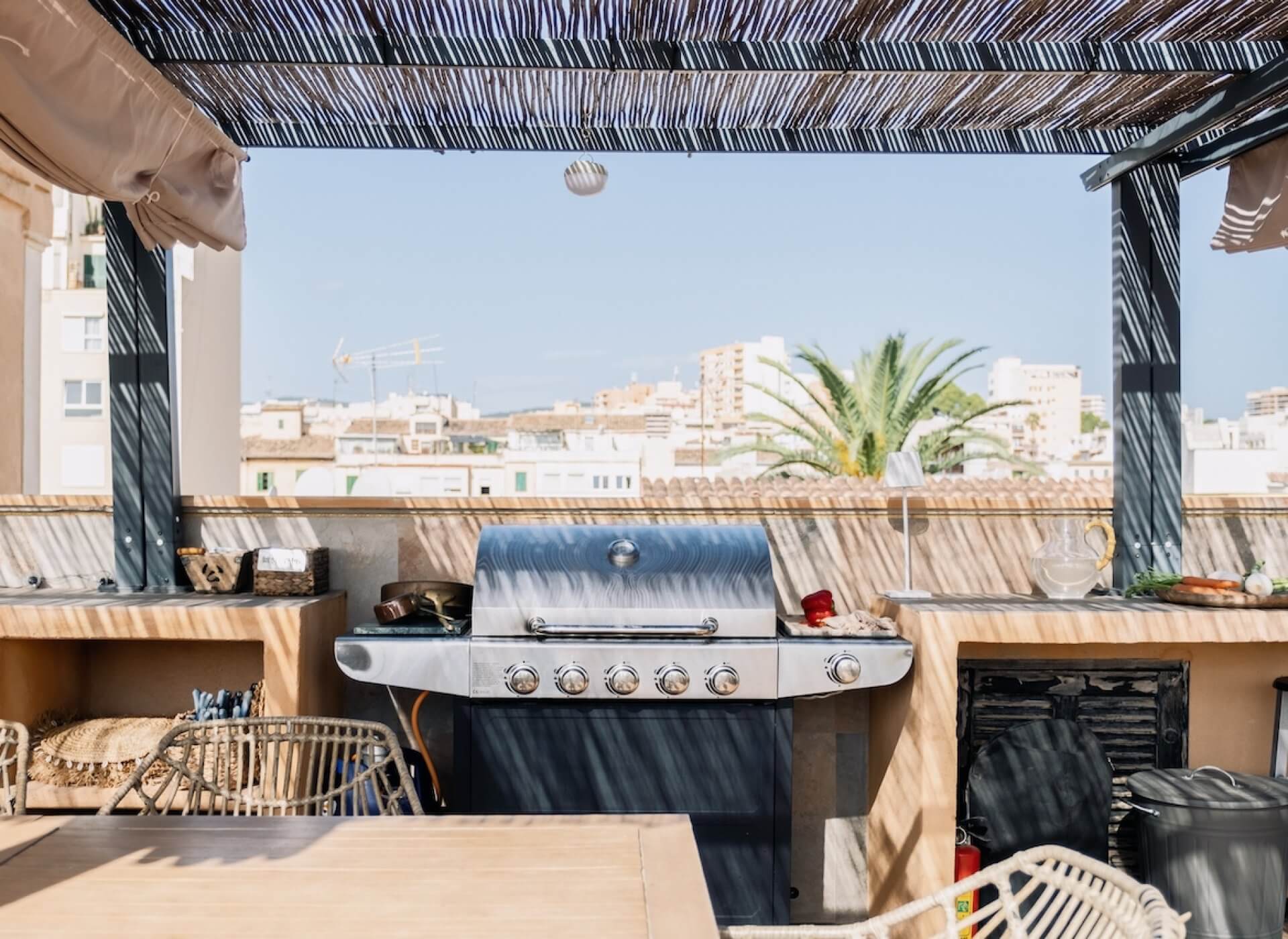 The large communal terrace with a traditional tower offers great views of the neighbourhood. A charming large dining area with an outdoor kitchen guarantees a great environment for entertaining.