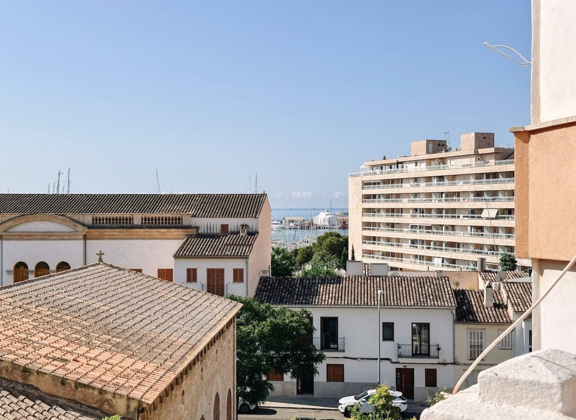 The apartment is located on a lovely street opposite the Sant Magi church in the heart of the trendy area of Santa Catalina. Conveniently located close to the Tennis Club, shops, restaurants and the Paseo Maritimo.