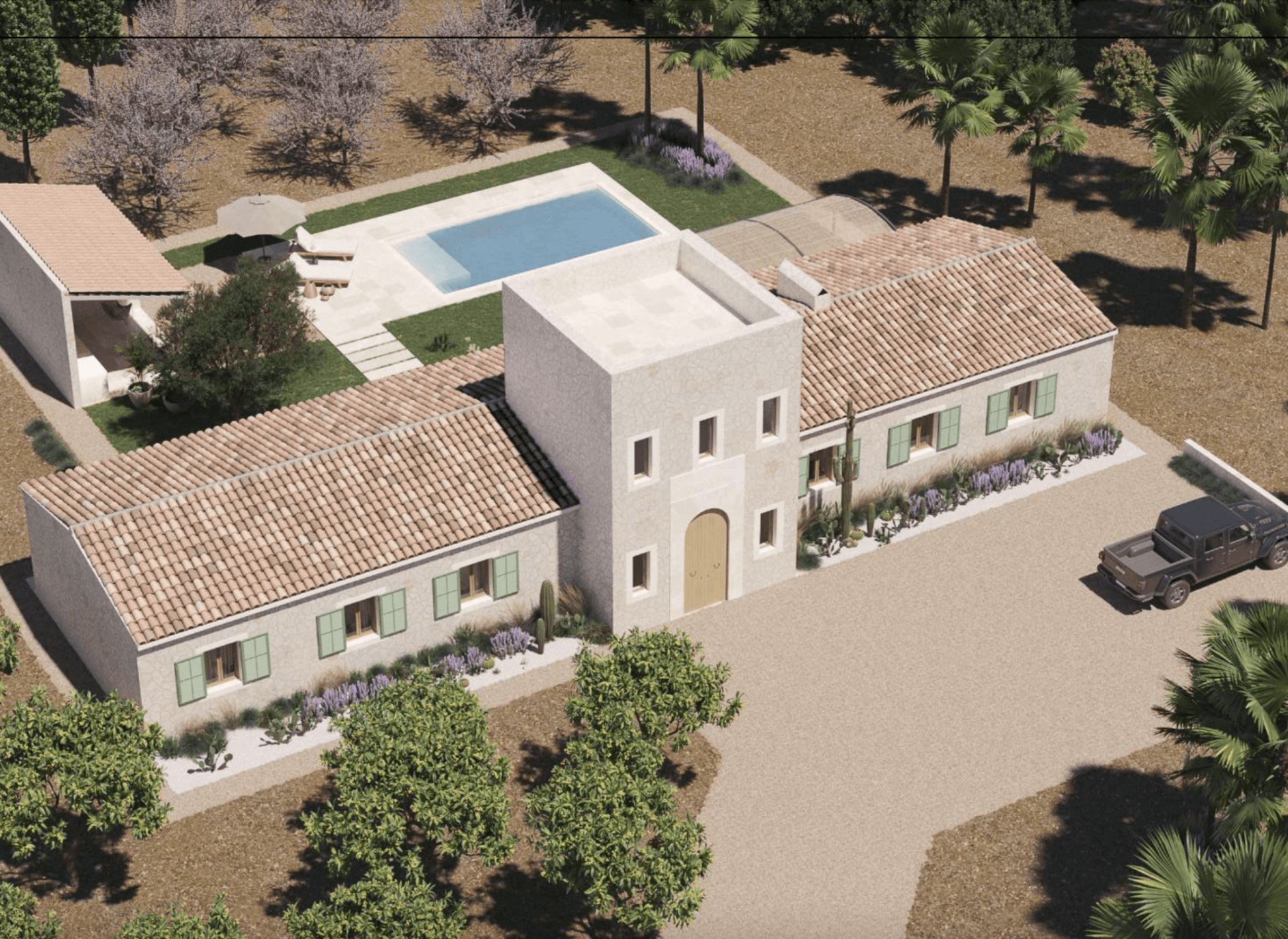 The plot of 17,000 m2, where the traditional house will be newly built will blend traditional Mallorquin architecture and contemporary living.