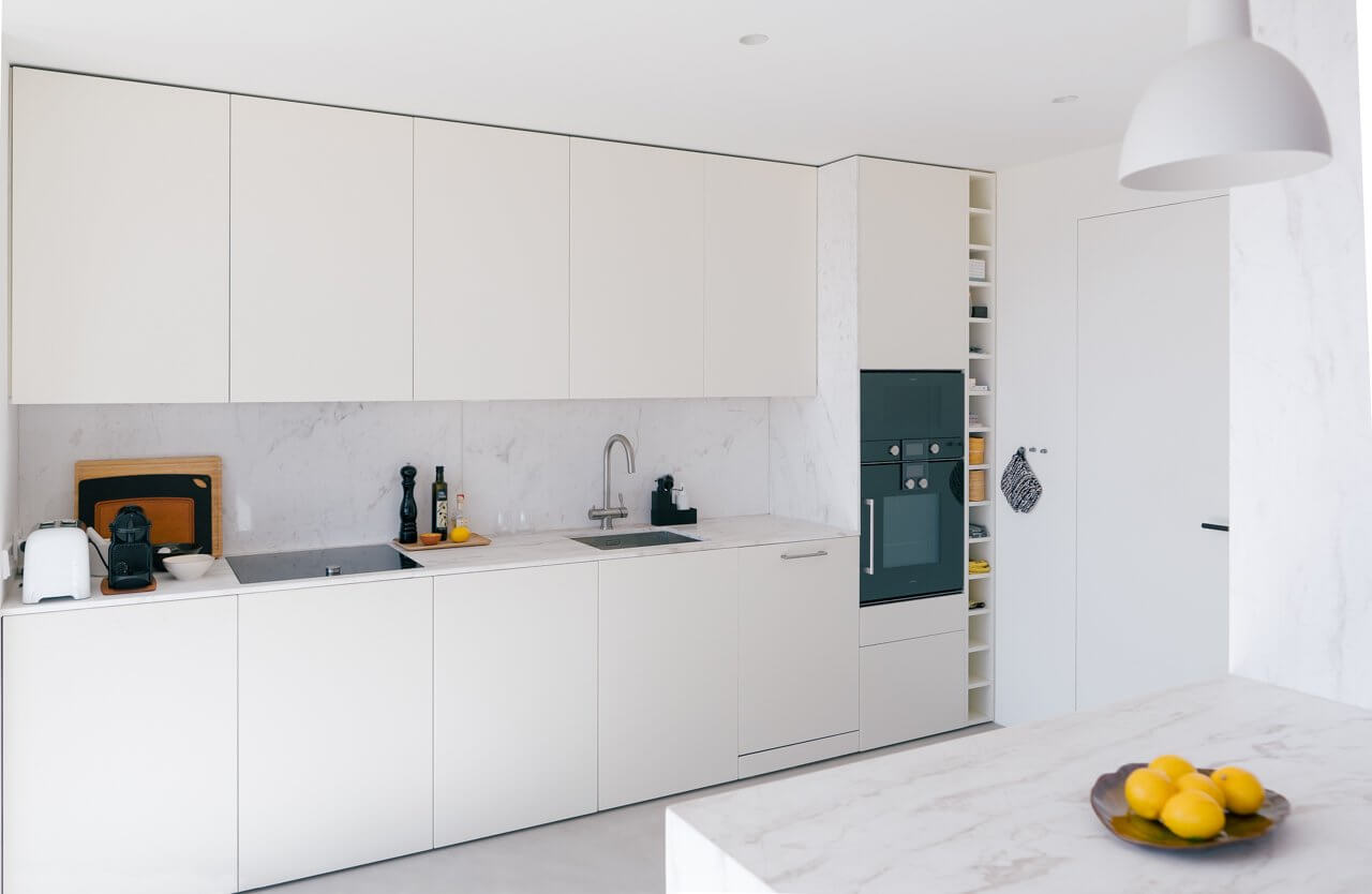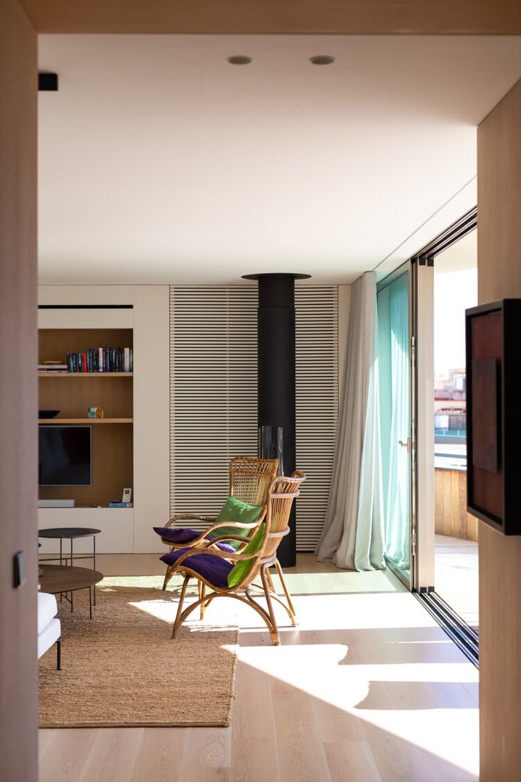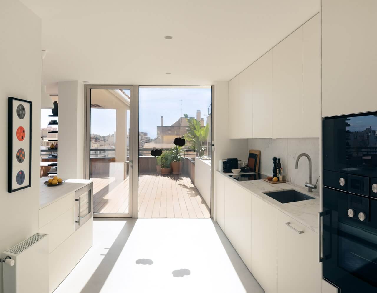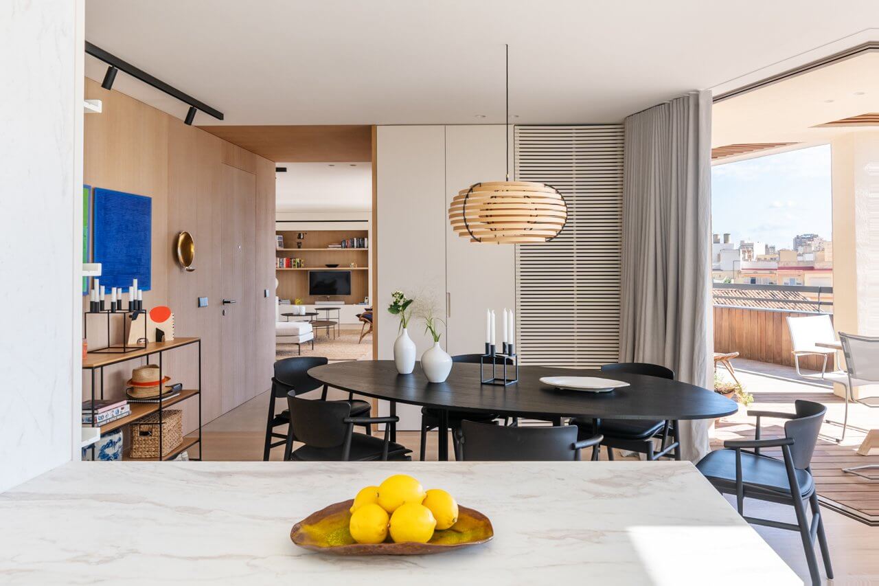 This light apartment was totally renovated in 2019, it has three bedrooms, two bathrooms and one guest toilet. The kitchen and dining area is light and open and leads out to the terrace and makes the space indoor and outdoor disappears. You have access to the terrace (of approx. 130 sqm) through out the whole apartment. The living room is connected to the dining area and the terrace as well and from here you go to the bedrooms area. The three bedrooms, in file, has access to the terrace. The master bedroom has a big walk in closet connected to the bathroom.