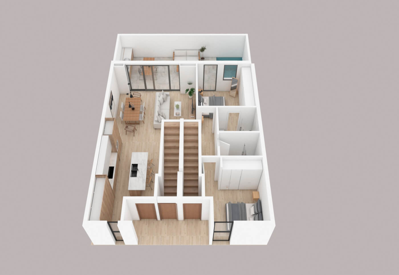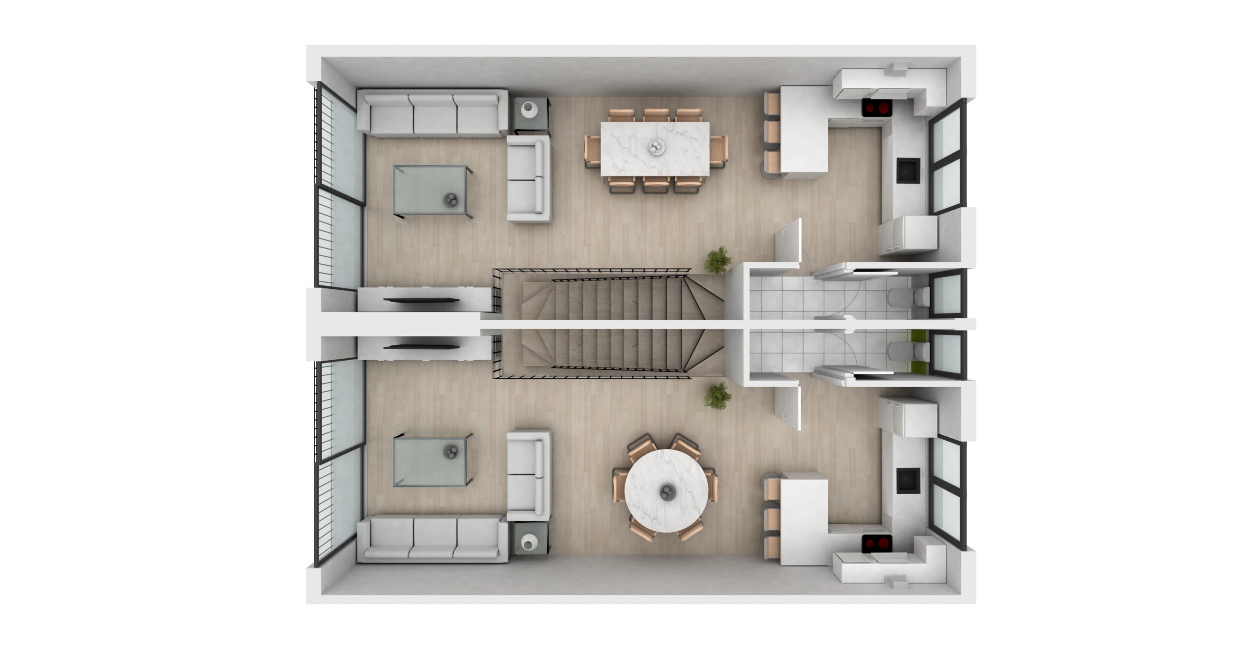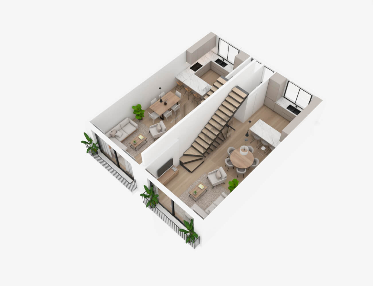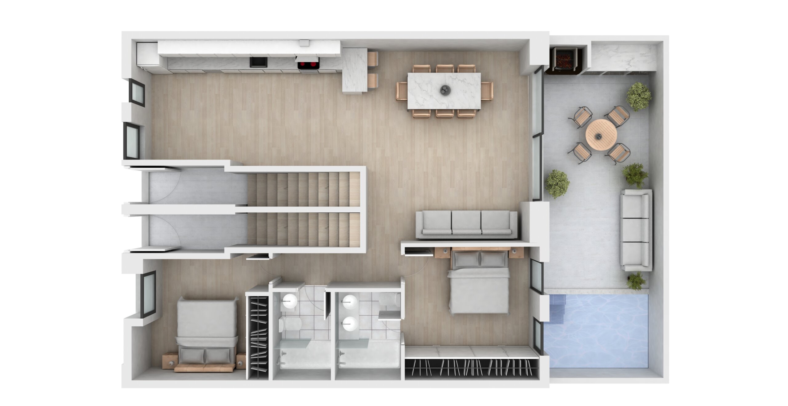 Apartment 1; Building area: 87.21 sqm, Terrace: 20.68 sqm, Pool: 6.41 sqm.