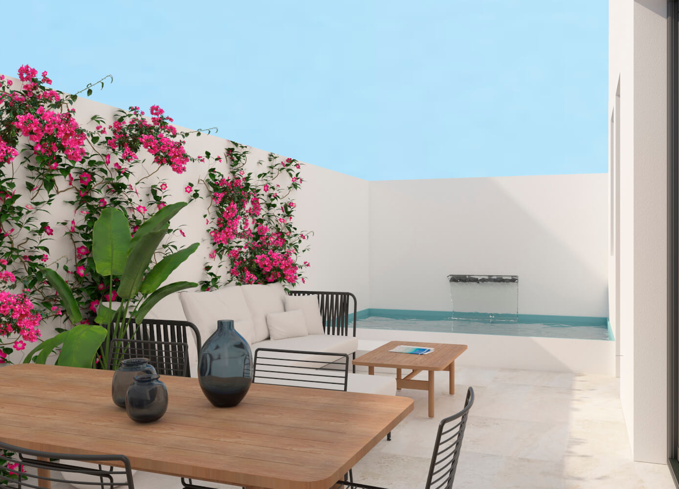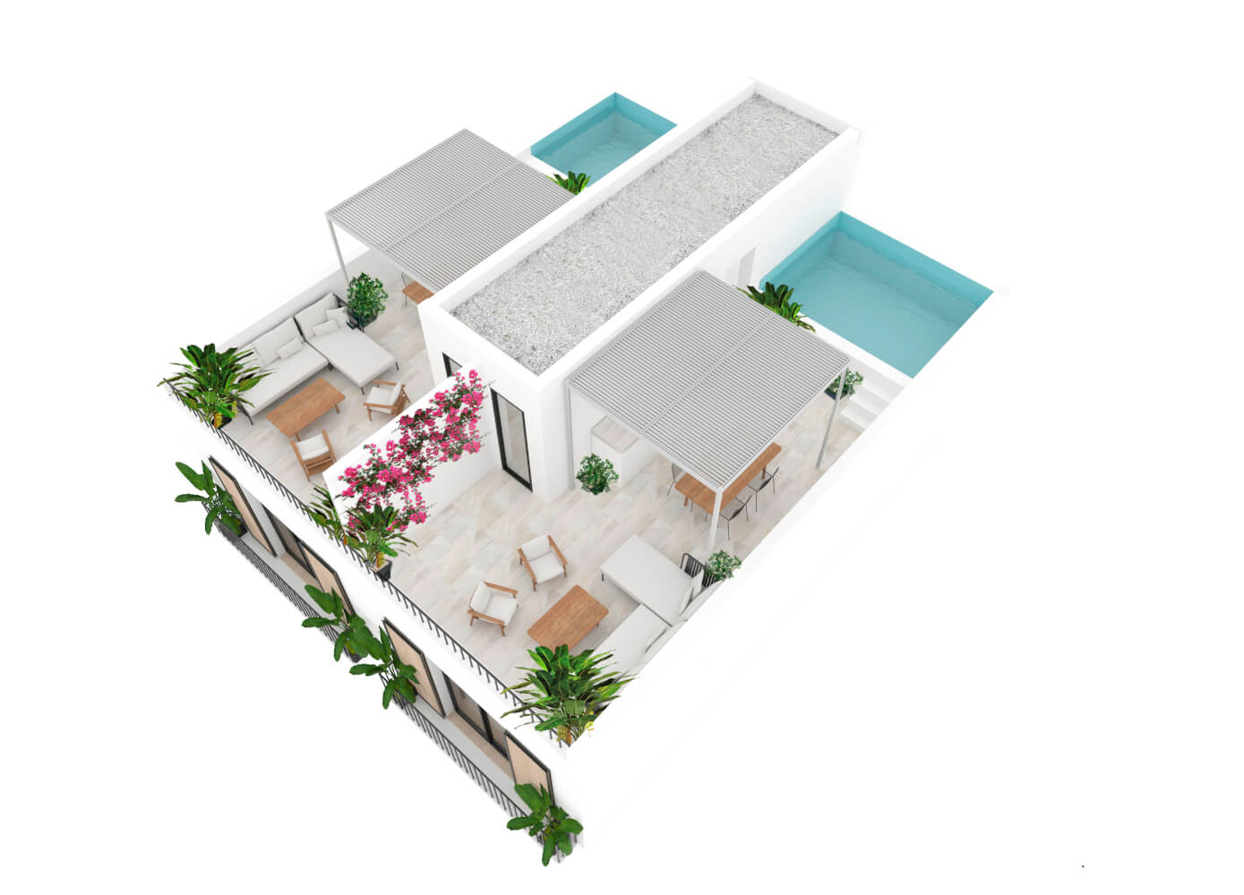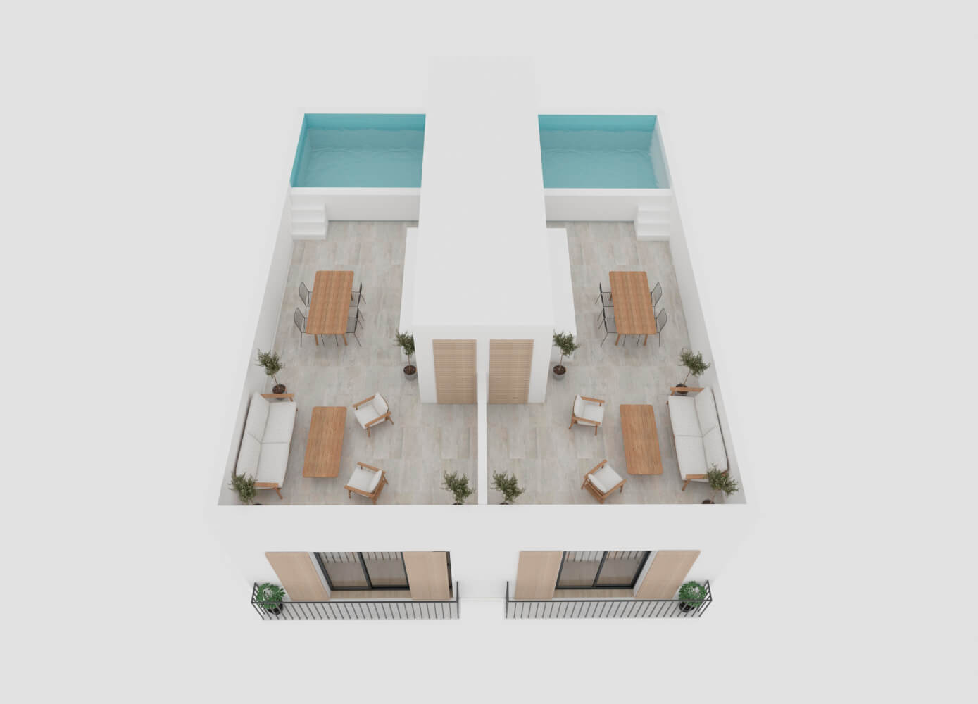 Apartment 3; Building area: 108.48 sqm, Terrace: 27.91 sqm, Pool: 7.86 sqm.