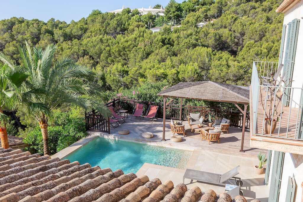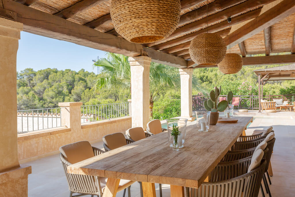 This house consists of two parts, the main house, and a separate building with separate bedrooms. The whole property is surrounded by lush gardens and greenery and a gorgeous patio with stunning views. The outside area has different sitting areas, covered terraces and a wonderful pool area.