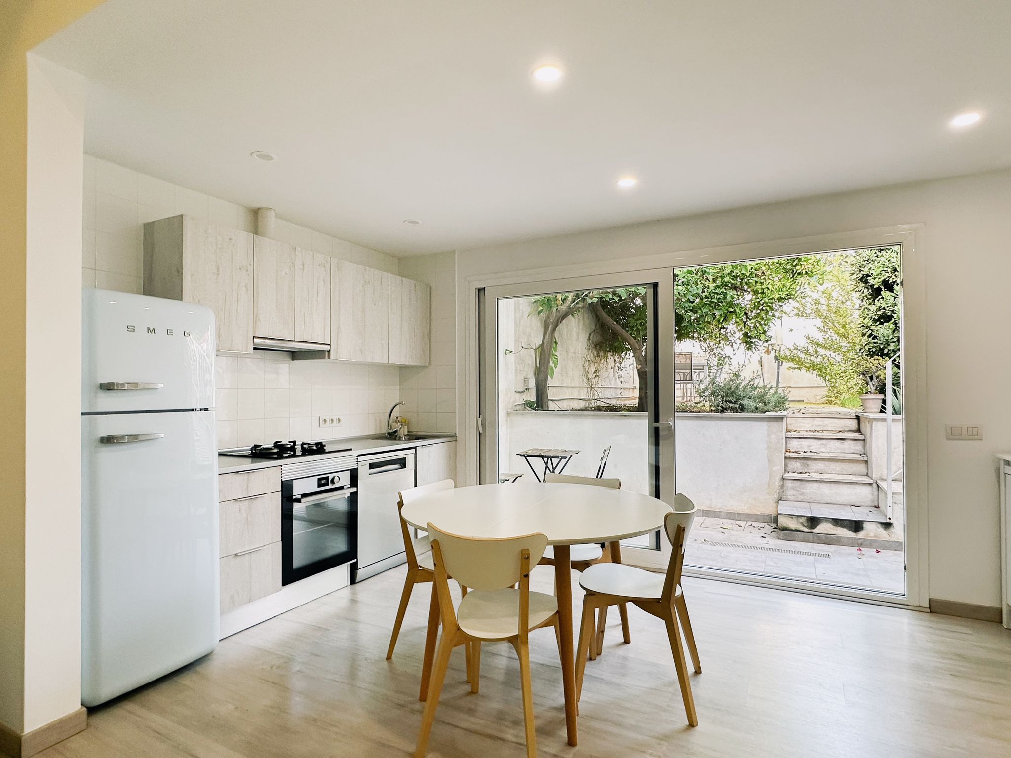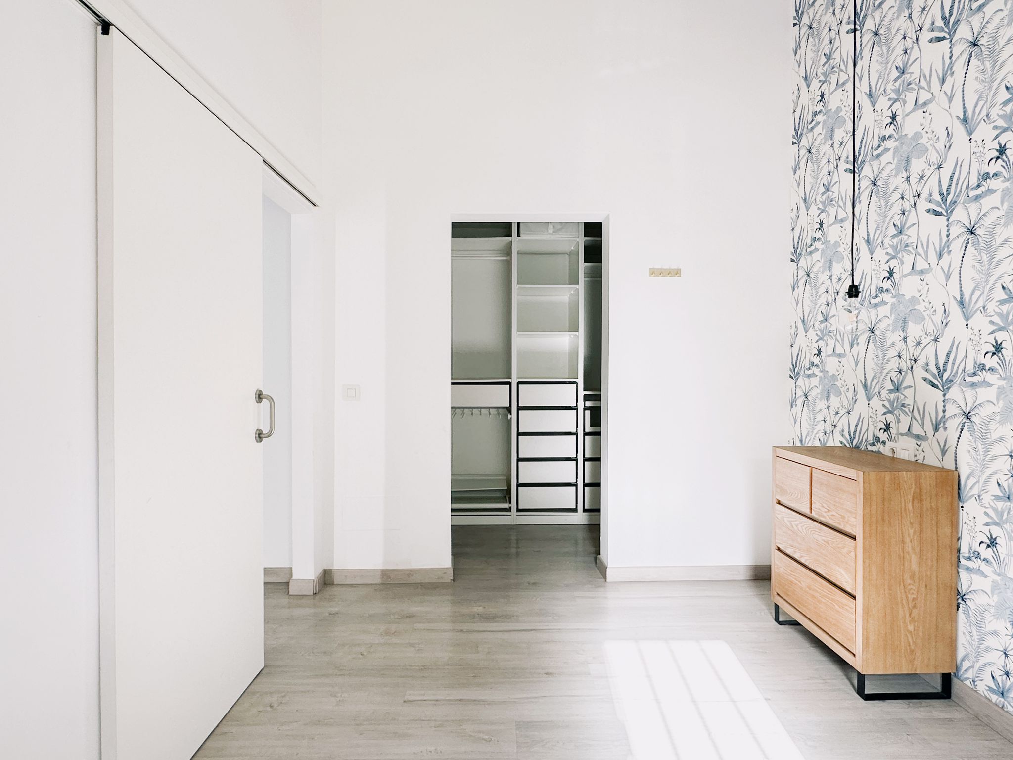 The property is located on a quiet, pleasant street with a living area of approx. 85m2 plus garden of 60m2. Upon entering the property there are two bedrooms on each side of a hallway that leads to the living room and an open kitchen with direct access to the back porch and the back terrace, with plenty of space to create a beautiful sunny patio with a pool. There is a staircase in the garden that leads to the roof terrace. The property have one bathroom and one toilet. There are high ceilings and exposed wooden beams throughout the property. There is a third room next to the living room that can be sued as a playroom/ children’s bedroom/ storage.