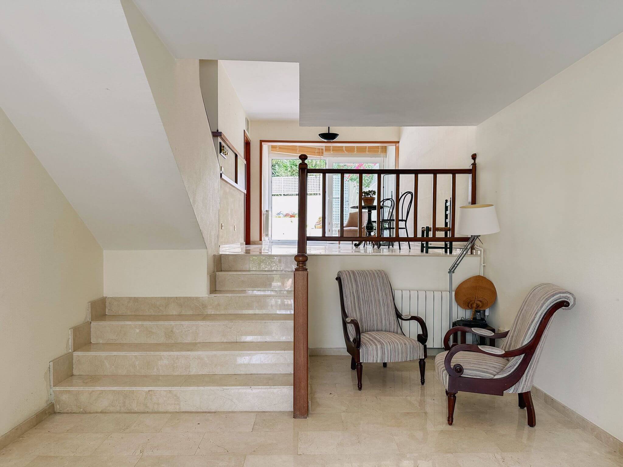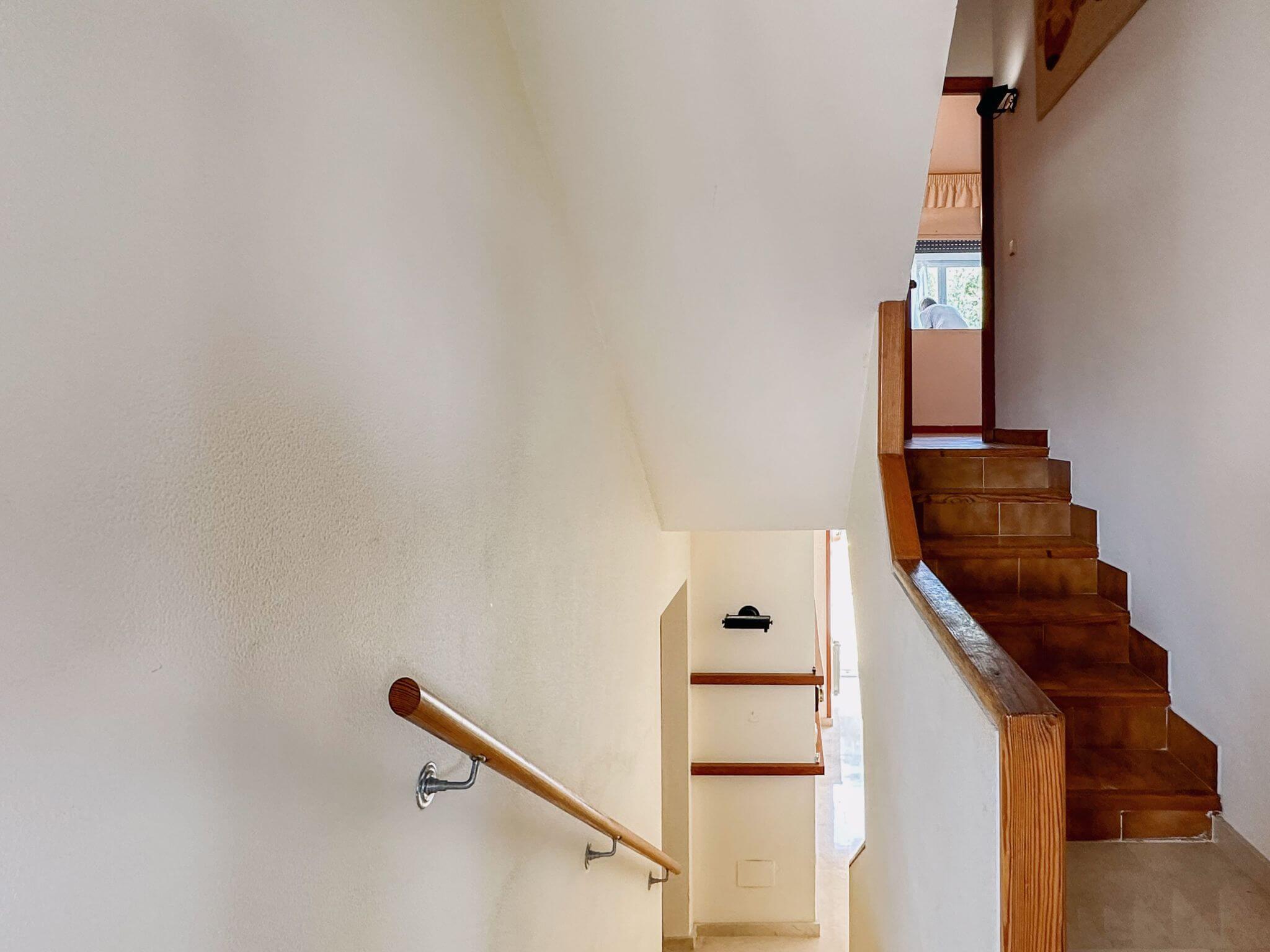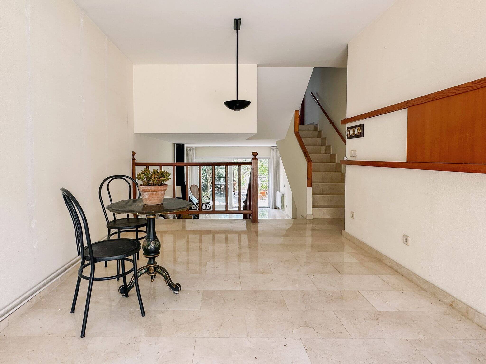 Townhouse with private garage and terraces to reform in Bonanova, Palma. This fantastic house with a large terraces both infront and in the back, and private garage is an excellent opportunity for an investment. The house has a total living space of 184m2 and offers beautiful views of the neighborhood and the distant sea. Currently, the house consists of a living room that opens onto the 50m2 front terrace, a guest toilet, a separate kitchen and a dining room that opens onto the 25m2 backyard, from here you can access a beautiful green park, perfect for one morning. walk with a dog or enjoy a bit of nature. The upper levels of the house offer 5 bedrooms and 3 bathrooms. The distribution can be easily modified for a modern lifestyle.