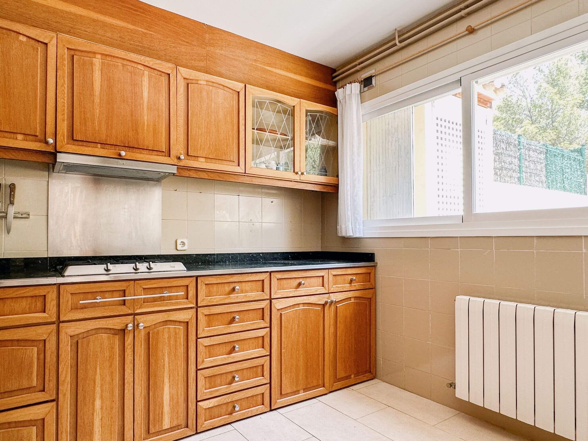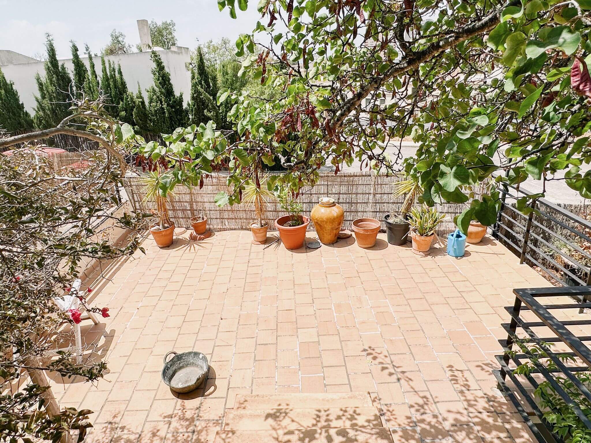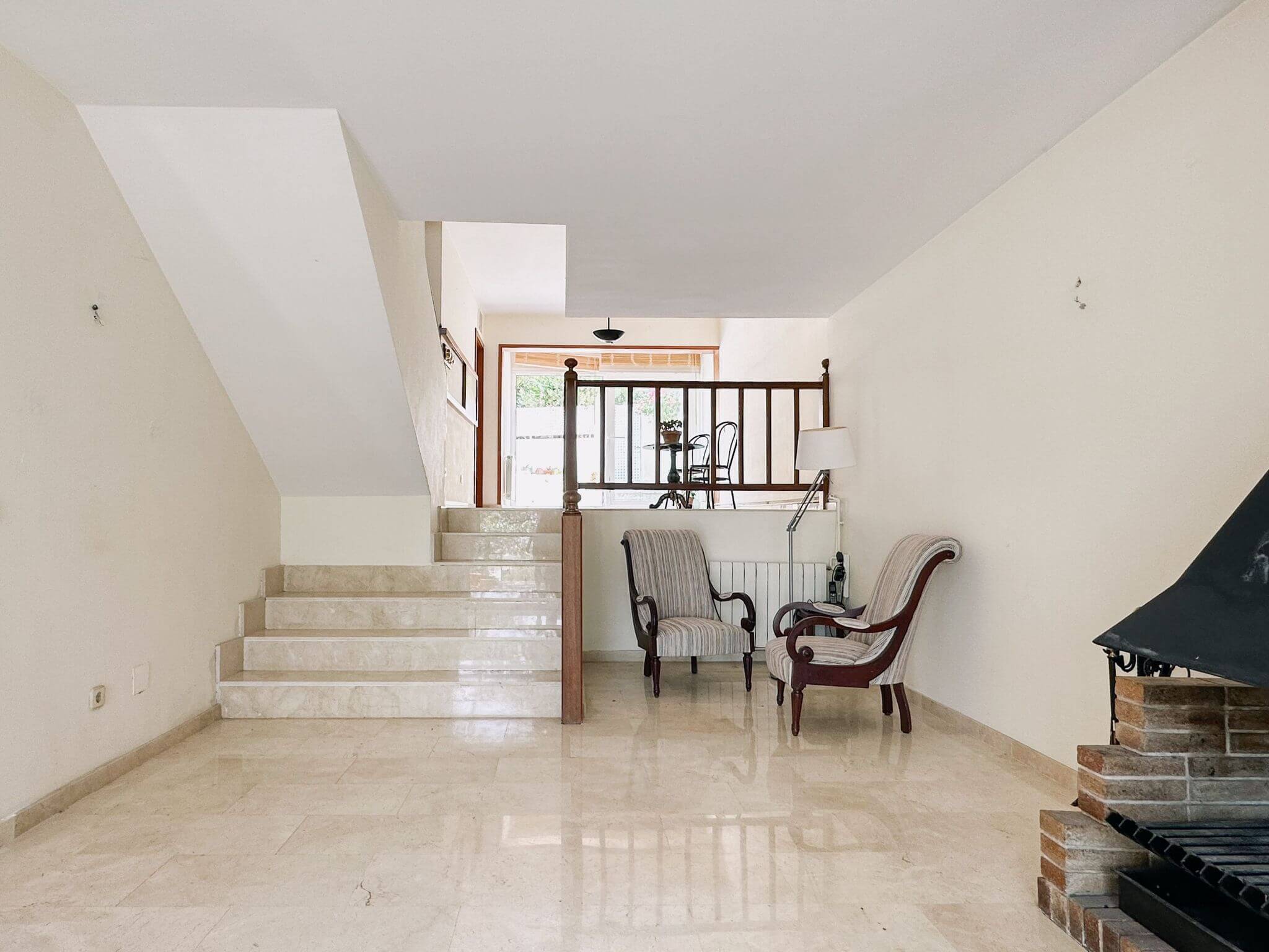 Townhouse with private garage and terraces to reform in Bonanova, Palma. This fantastic house with a large terraces both infront and in the back, and private garage is an excellent opportunity for an investment. The house has a total living space of 184m2 and offers beautiful views of the neighborhood and the distant sea. Currently, the house consists of a living room that opens onto the 50m2 front terrace, a guest toilet, a separate kitchen and a dining room that opens onto the 25m2 backyard, from here you can access a beautiful green park, perfect for one morning. walk with a dog or enjoy a bit of nature. The upper levels of the house offer 5 bedrooms and 3 bathrooms. The distribution can be easily modified for a modern lifestyle.