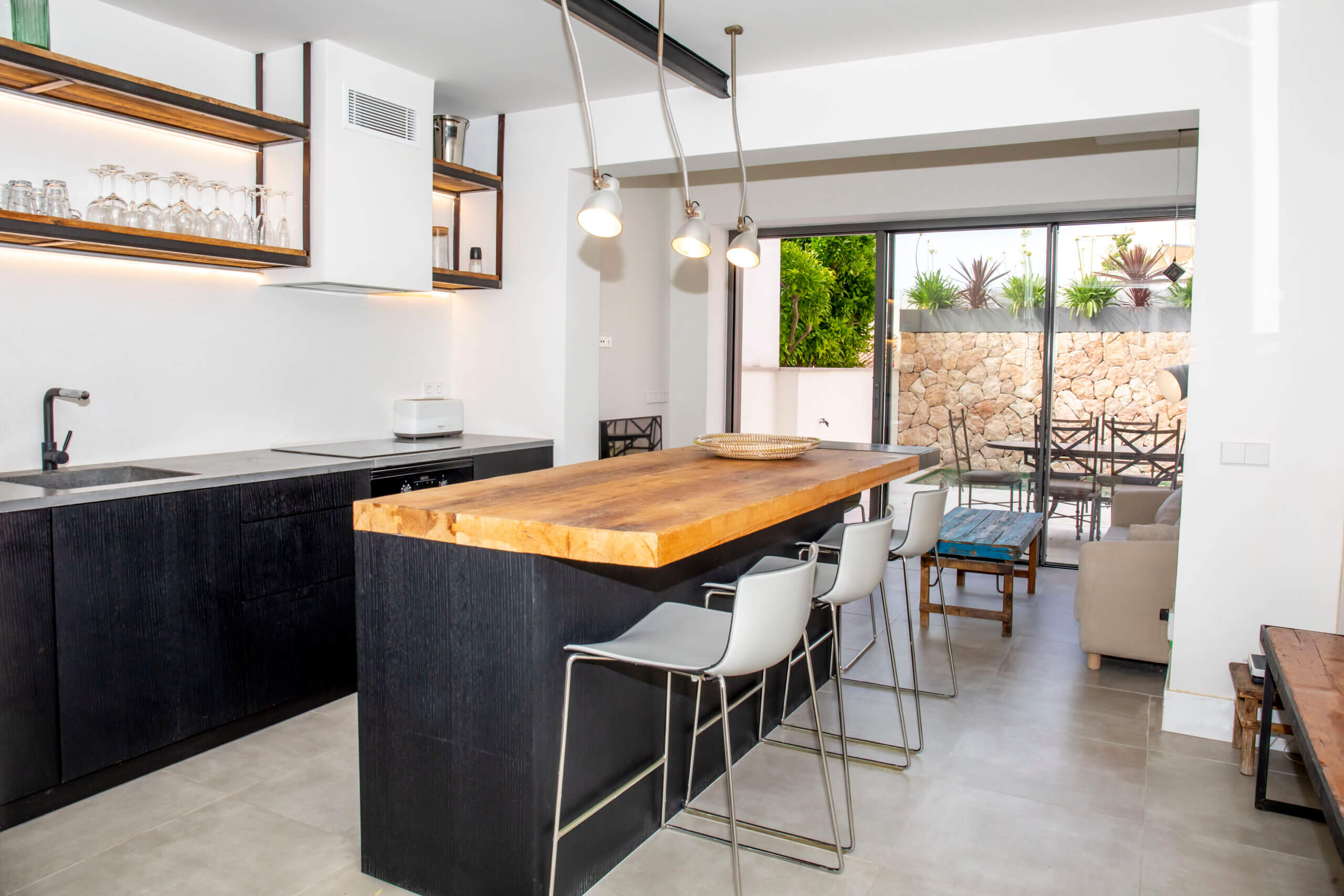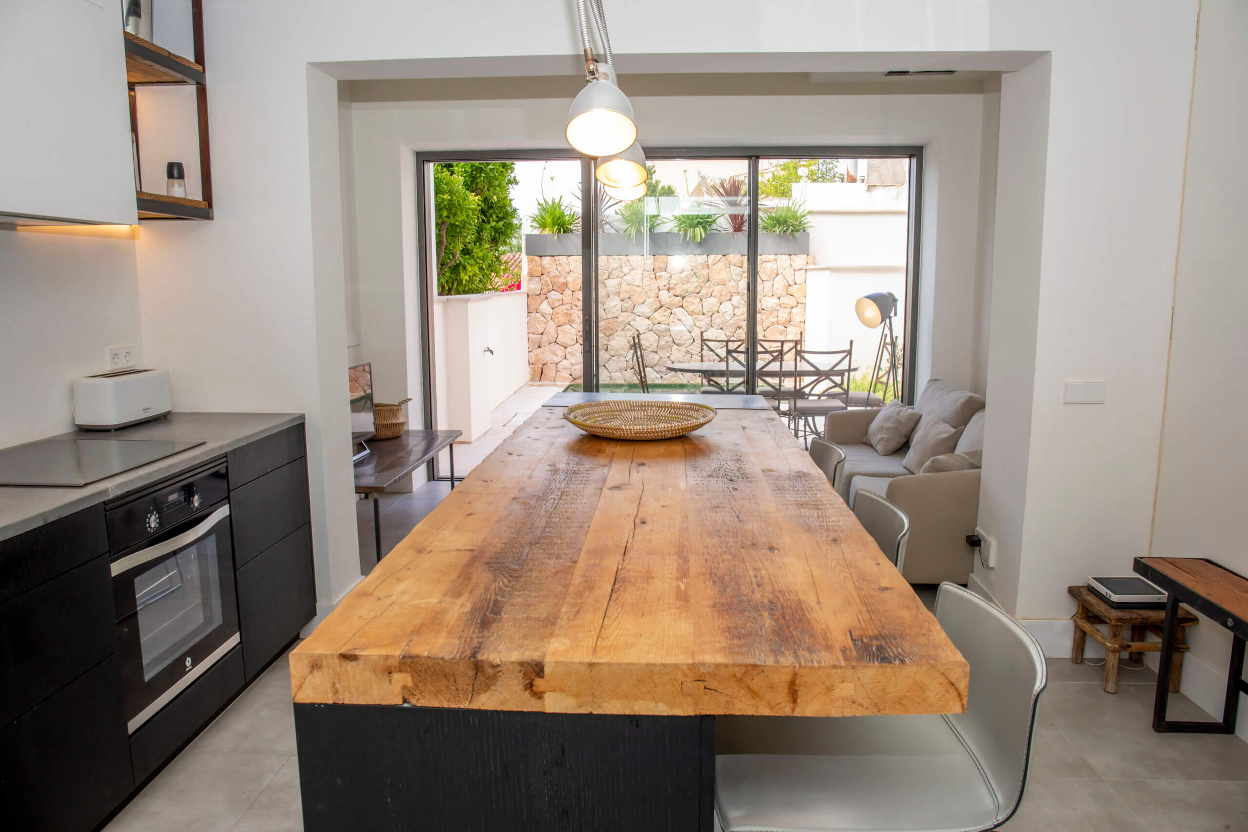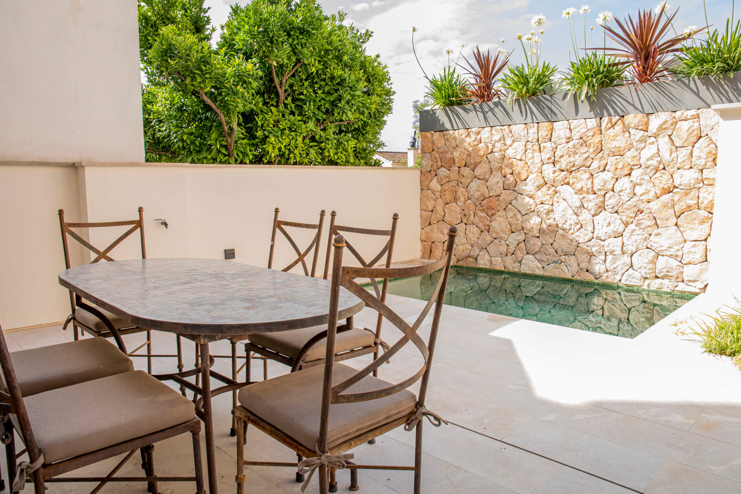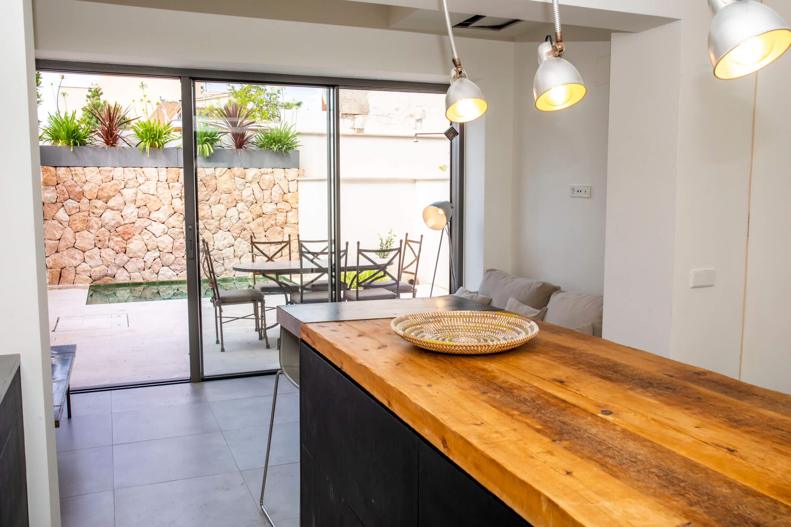 Renovated townhouse for sale with private patio and pool in the residential area of Son Espanyolet. Located close to the vibrant and highly popular Santa Catalina area with the food market, tennis club restaurants and bars – one of the most sought-after postcodes in Palma de Mallorca.