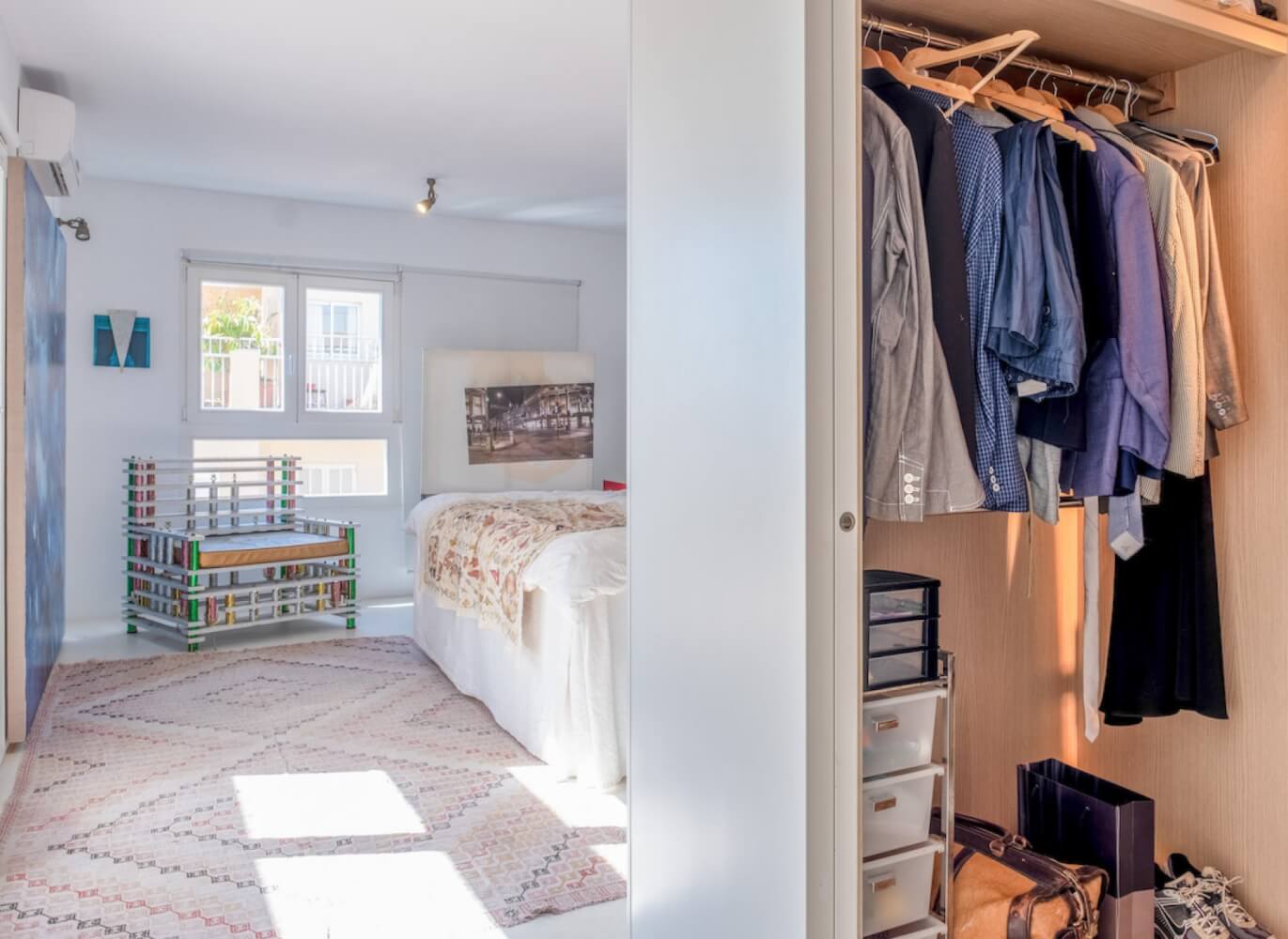 The apartment has plenty of storage possibilities in the hallway and the bedrooms, a spacious walk-in closet in the master bedroom.