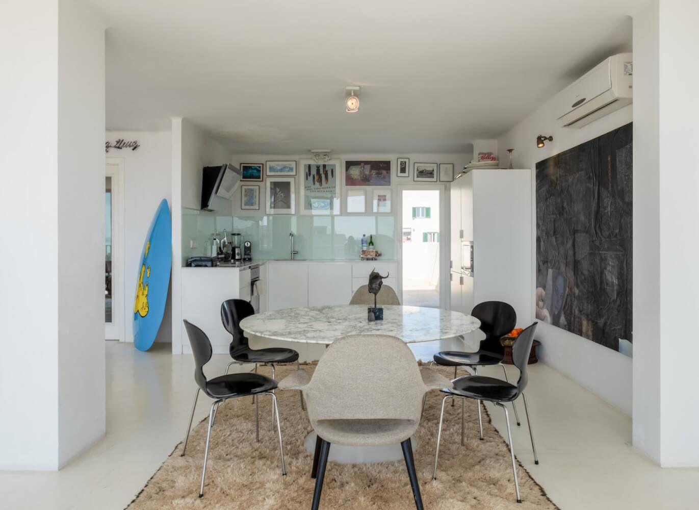 The property occupies the entire top floor. The bright and modern interior of the property offers 210m2 of living area and 120m2 of terraces. The large, open plan kitchen and the living room have direct access to a terrace with sea views, and it’s the perfect space for socialising. A total of 4 bedrooms, two of them en-suite and three of the bedrooms have direct access to terraces.